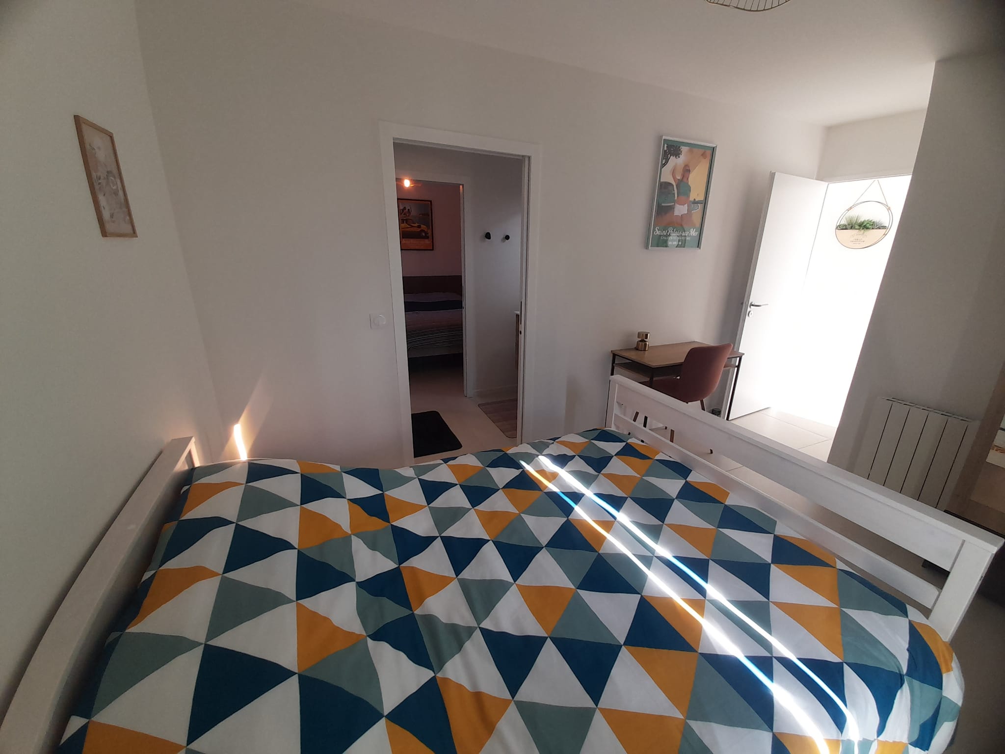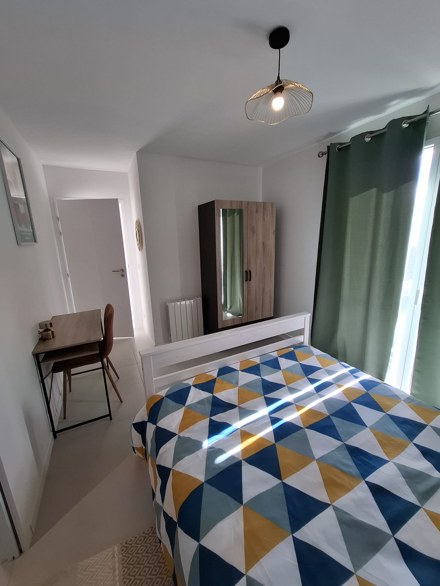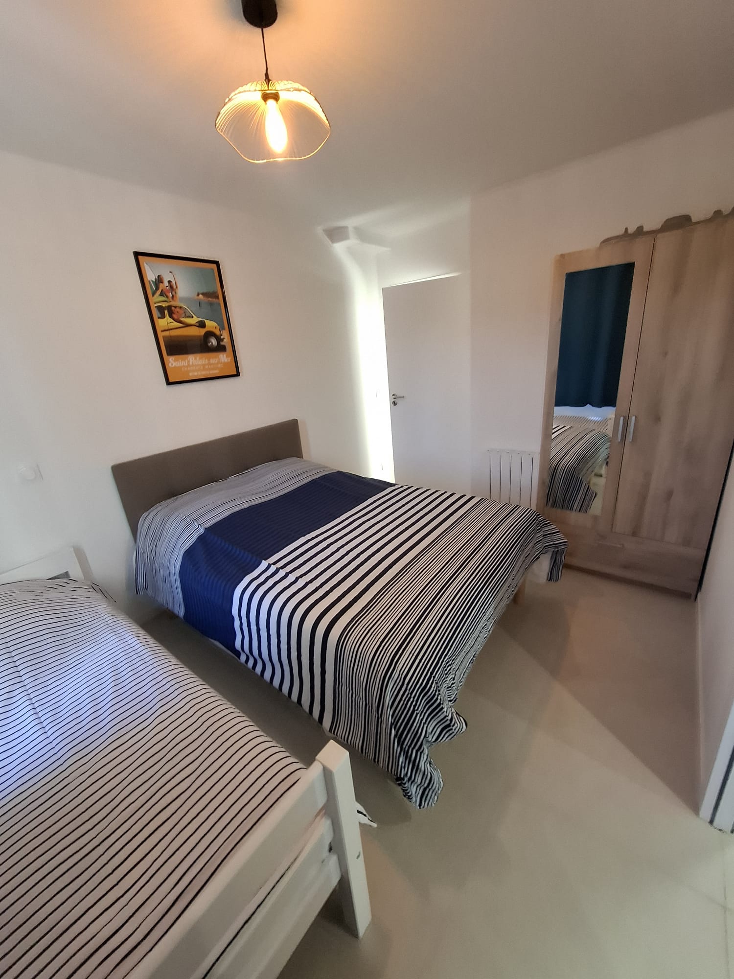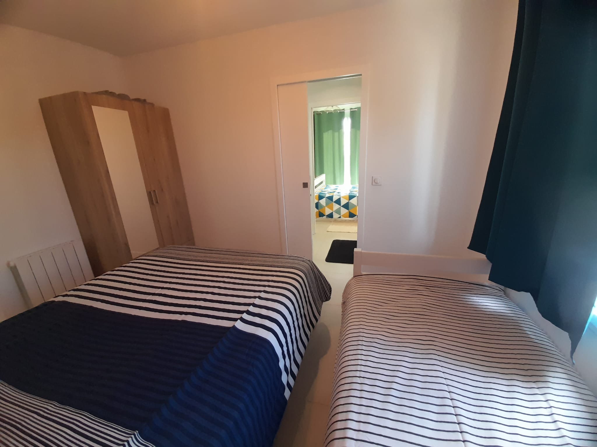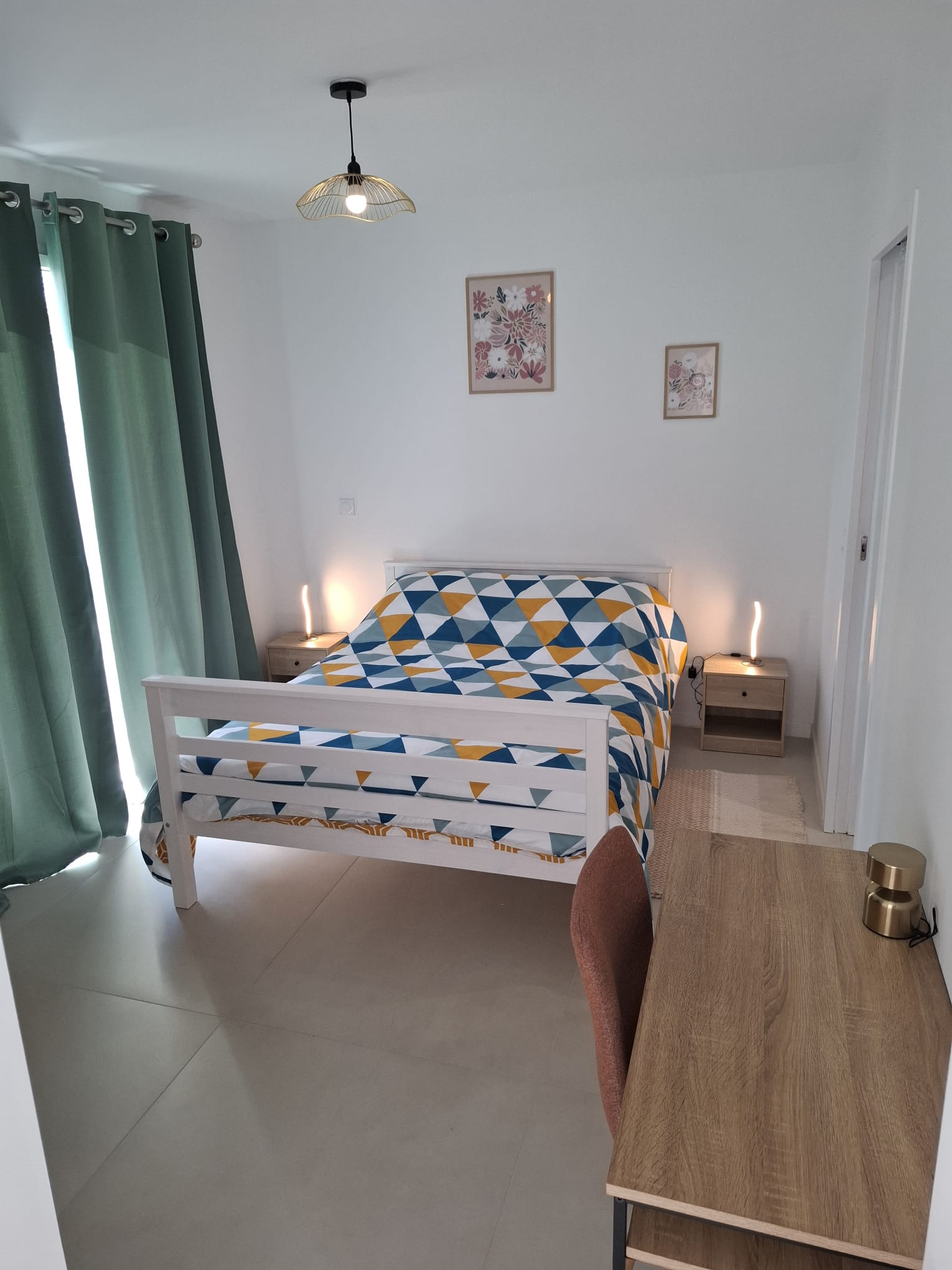 -deux chambres avec l’une un lit double 140cmX190cm, penderie, étagères,