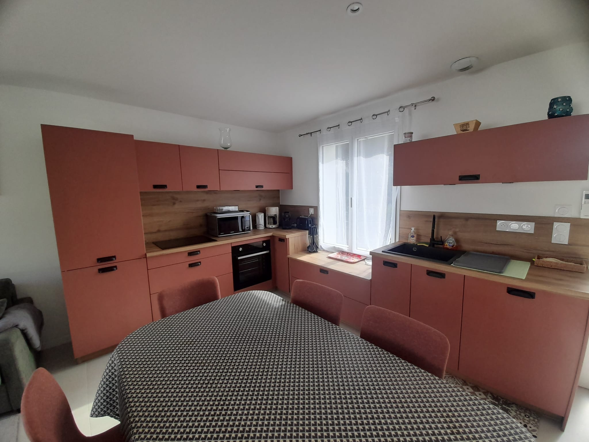 -Cuisine équipée de tout le nécessaire à la confection des repas, ouverte sur le