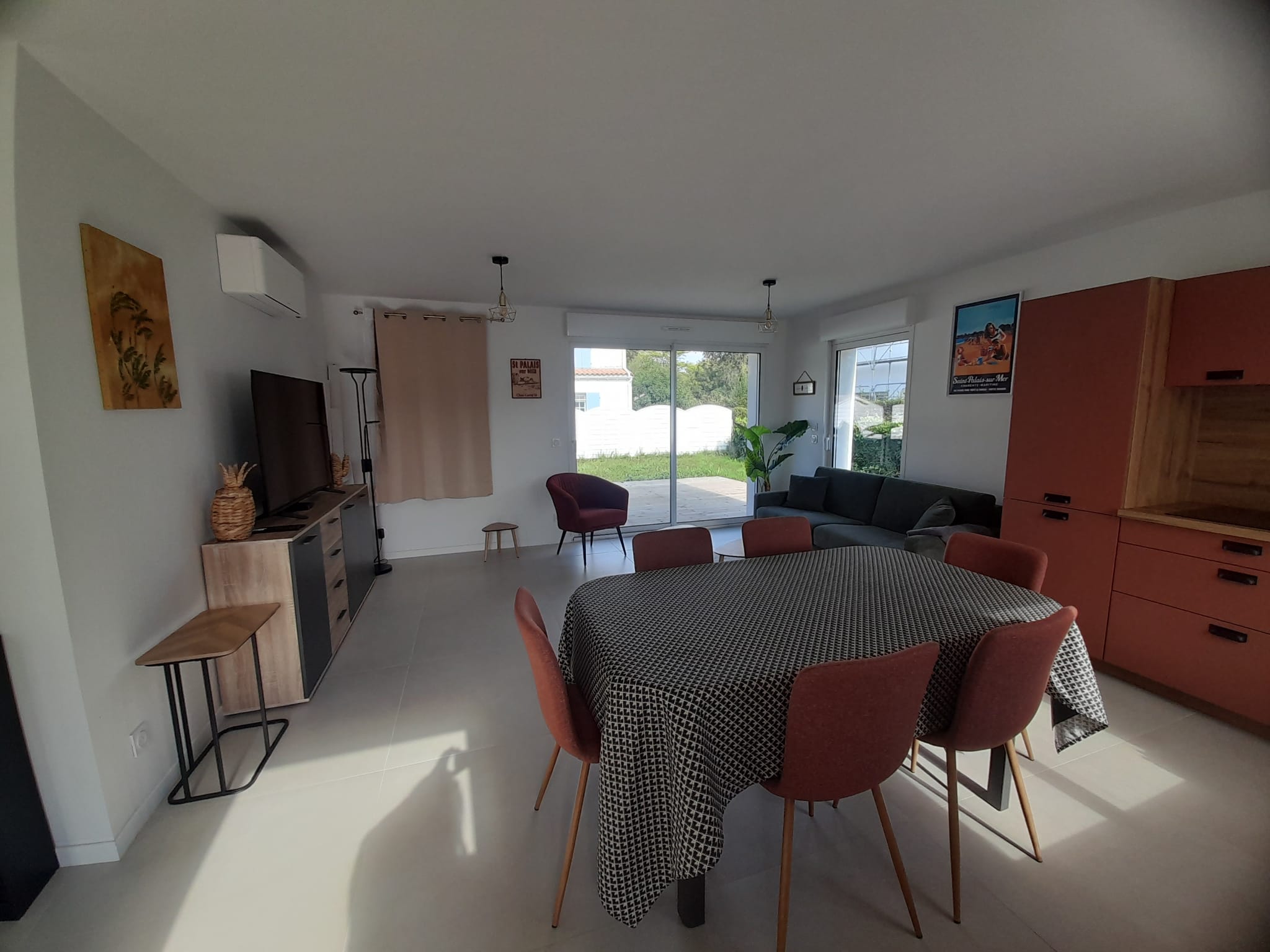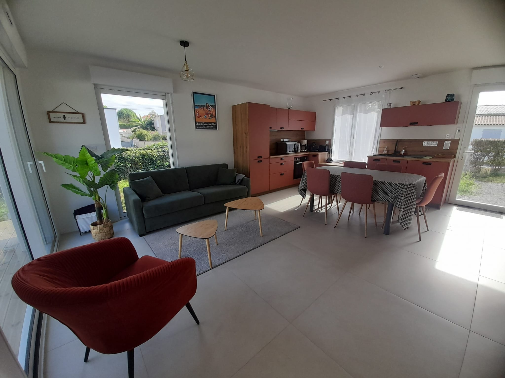 Cette maison de vacances d’une surface de 95m², entièrement rénovée (2025), pouvant accueillir 7 personnes, est située à environ 600m à pied de la plage de Nauzan (env.900m en voiture), et 1000m env. de la plage du Bureau et du centre village.